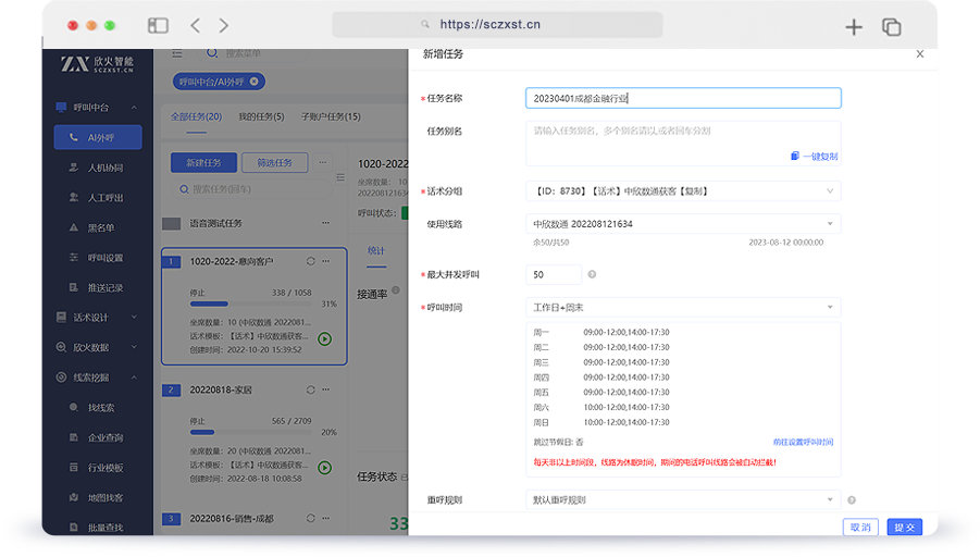 自定义呼叫策略,支持不同话术策略及时间策略,配置灵活