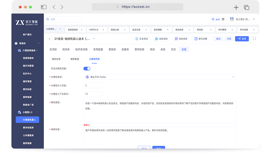接入了豆包、deepseek、通义千问、智谱等十余个版本大模型智能体,结合小模型,让AI机器人更智能