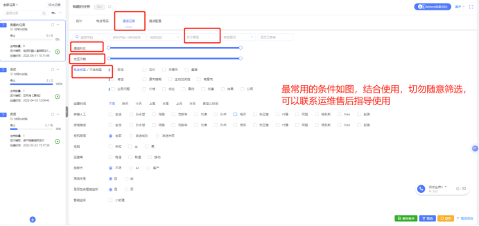 不论是ABCD等级还是打标签的方式判断意向客户,每个条件只是单一的一种方式判断的结果,不能直接作为最终通话记录意向度准确率恒定的唯一标准,请结合高级筛选最终获取筛选意向客户。